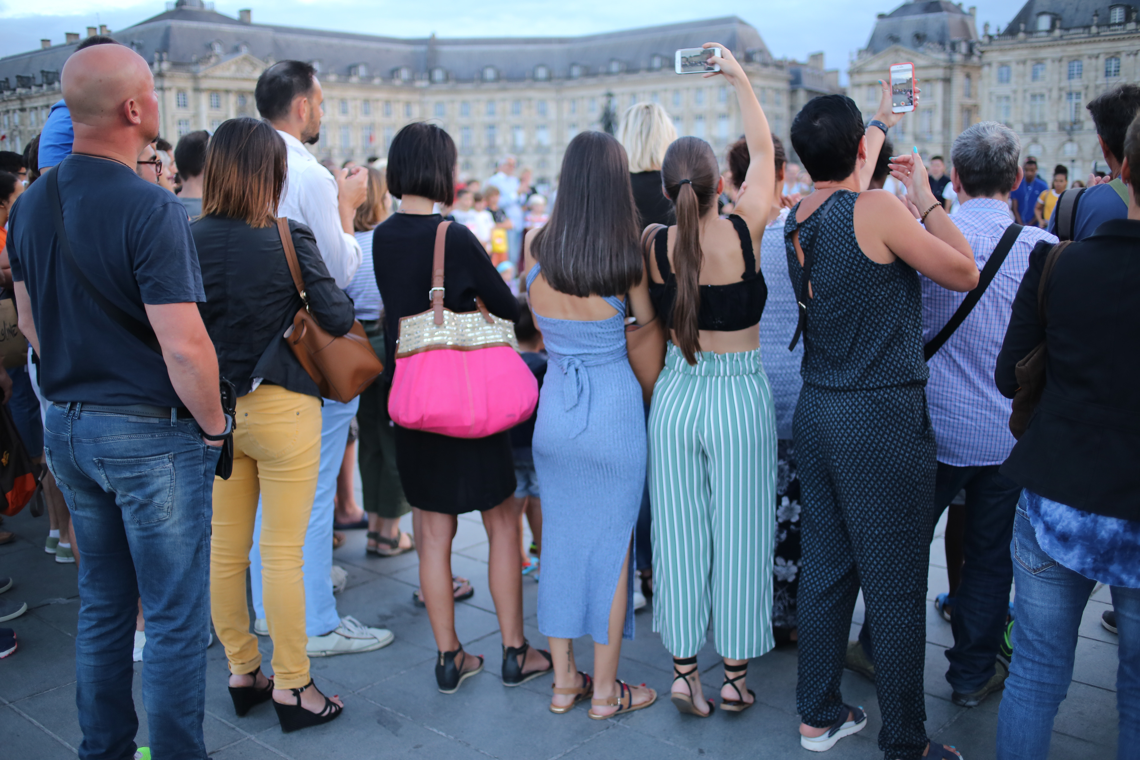 In a bustling city square, a diverse crowd has gathered, each individual absorbed in the moment, creating a vibrant tapestry of human connection. The image captures the backs of people, offering a glimpse into the communal experience that defines public gatherings. The setting is grand, with a historic building providing a majestic backdrop that hints at a location steeped in history and culture.